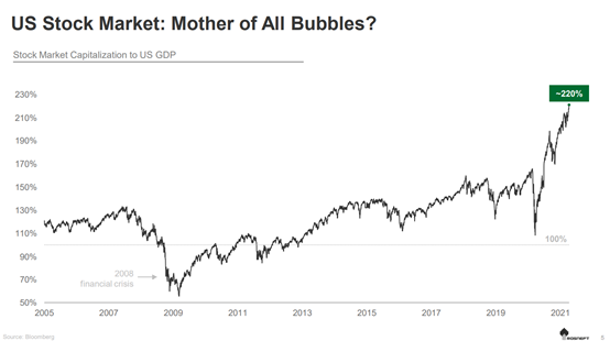 正如我們所看到的,與中國不同,美國正在刺激股市而不是實體生產。涌入股市的資金已經超過了美國GDP的兩倍,這可能會導致——就像不止一次發生的那樣——與21世紀初網絡公司(第一批互聯網公司)的崩潰相類似。一些部門的資本化在沒有基本因素的支持下不斷增長,從而給全球經濟帶來風險,因為金融市場上出現了“泡沫”。