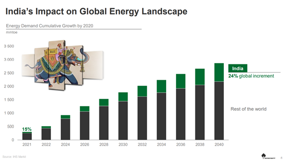談到納倫德拉先生提到的印度是一個朝天的太陽神戰車的形象,我們可以肯定地說,印度經濟的發展將對全球能源的形象產生相當大的影響。