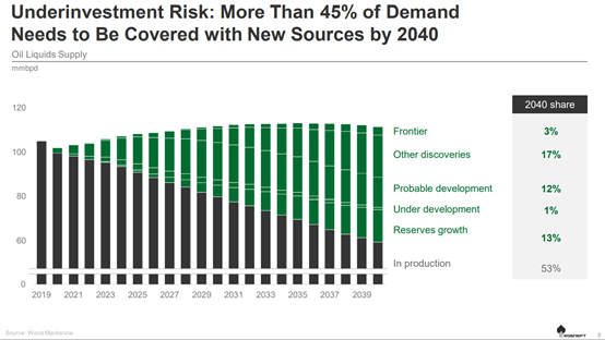 投資不足的風險:到2040年,新的生產來源將確保超過45%的供應