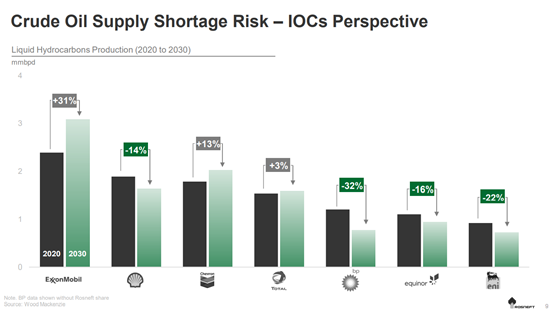 然而,由于投資不足,石油供應的長期穩定性面臨風險。這是由于各利益相關者要求完全停止對石油部門的投資,以及各大巨頭希望通過加強股息支付和股票回購來增加股東價值和股東回報。部分公司在投資者的機會主義利益的支配下,陷入了困境。一些公司被迫只實施那些能產生短期回報的項目,并取消對新資源的勘探和評估。因此,在過去的幾年里,石油和天然氣儲量的增加一直處于歷史最低水平,因此已經可以預測到一定的資源短缺。這一趨勢可能成為全球各大公司的“新常態”,并導致資源基礎枯竭。世界面臨著石油和天然氣嚴重短缺的風險。