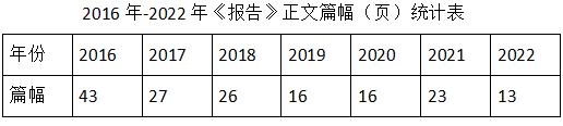 從表中所列七年來的《報告》篇幅統計可以看出,今年的《報告》正文僅有短短的13頁,僅為2016年版43頁的30%(筆者至今認為,該《報告》的首版最有價值。)難道就沒有更多具有指導意義和保存價值的亮點內容可以編寫了嗎?
