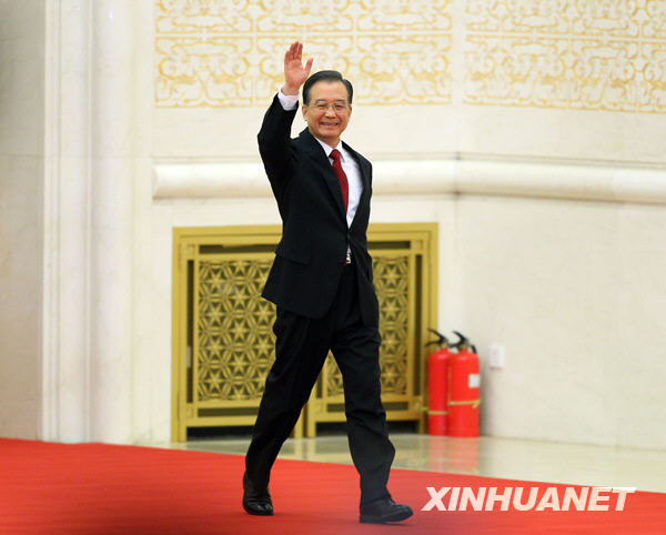 十一屆全國人大三次會議3月14日閉幕,溫家寶總理在在人民大會堂金色大廳答中外記者問。