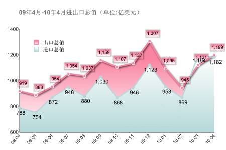 ·進出口:4月出口額1199.2億美元 進口額1182.4億美元