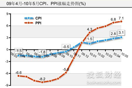6月11日國家統計局公布最新數據顯示,5月份CPI同比上漲3.1% PPI上漲7.1%。