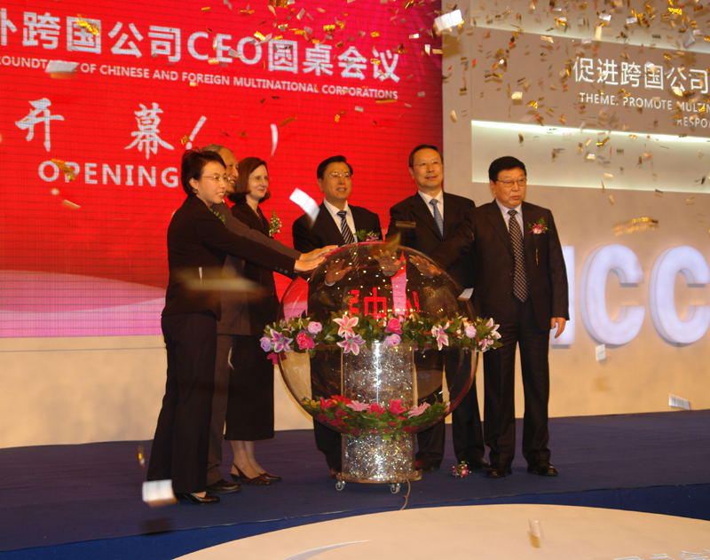 下面讓我們有請各位嘉賓上臺共同啟動中外跨國公司CEO圓桌會議。