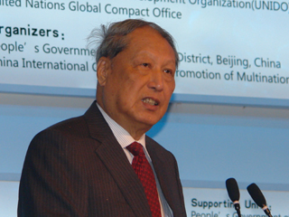 我非常高興向所有參加第四屆中外跨國公司CEO圓桌會議的與會人員表示問候!諸位對于投資企業社會責任和可持續發展問題的關注非常重要。私人投資不僅在建設環境友好型社會,提高能源效率,發展低碳經濟和綠色技術方面有重要的作用,也是驅動創新和增加就業機會的主要動力。因此,對我們實現千年發展目標十分重要。