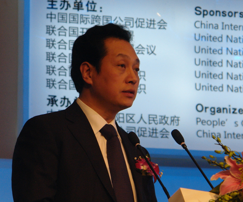 主持人 鄭萬通:尊敬的張德江副總理、各位來賓、女士們、先生們,大家上午好!由中國國際跨國公司促進會、聯合國開發計劃署、貿易和發展大會、工業發展組織、環境綠化署、全球契約組織共同舉辦,由北京市朝陽區人民政府和中國國際跨國公司促進會共同承辦的第四屆中外跨國公司CEO圓桌會議今天在這里隆重開幕了。中國政府對本次會議高度重視,聯合國秘書長潘基文先生也專門發來了賀信。在這里,我謹代表大會主委會對各方面給予的寶貴支持表示衷心的感謝!對各位中外嘉賓的光臨表示熱烈的歡迎!