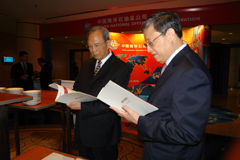 曾培炎與周文重會議間歇觀看中國能源網資料介紹