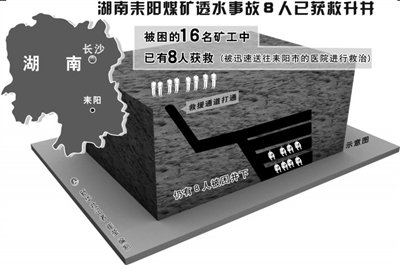 湖南耒陽煤礦透水事故8人獲救 仍有8人被困