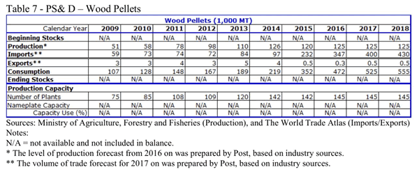 USDA FAS GAIN報告:日本木屑顆粒及棕櫚仁殼進口預計增長