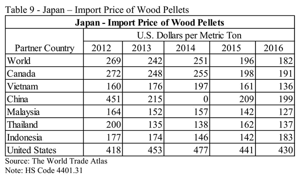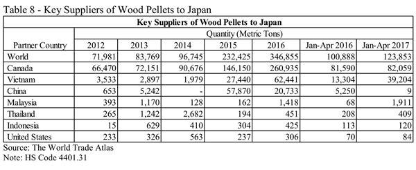 去年木屑顆粒進口量達347,000噸,相比2015年增長49%。其中261,000,即75%木屑顆粒進口量來自加拿大,18%來自越南,而6%來自中國。