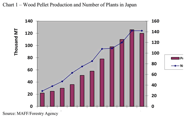 圖1 -日本木屑顆粒生產和顆粒廠數量