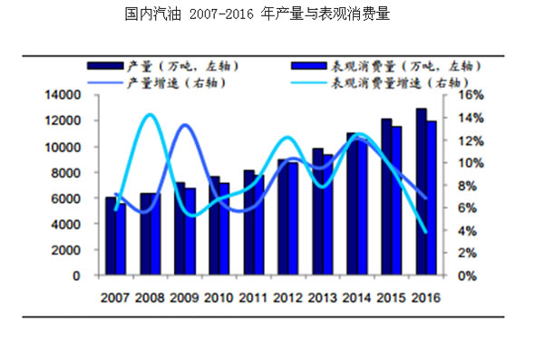 從國內需求來看,按照我國汽油年表觀消費量1.2億噸,全面使用E10(汽油中含有10%比例的乙醇)則需要1200萬噸燃料乙醇。目前,我國燃料乙醇年產量僅260萬噸,摻兌比例僅2%左右,可謂潛力巨大。