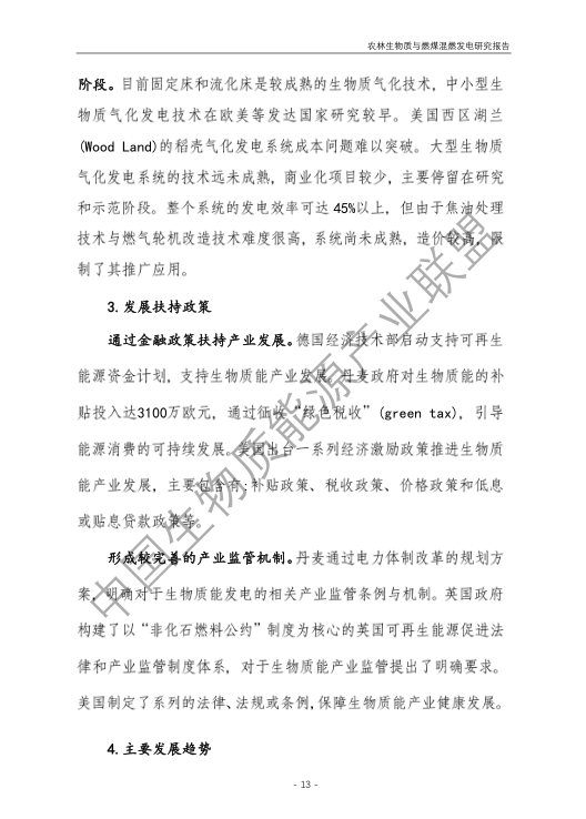 10月13日,中國生物質能源產業聯盟在北京發布《農林生物質與燃煤混燃發電研究報告》。農林生物質與燃煤混燃發電,又稱農林生物質與燃煤耦合發電,是指在傳統燃煤發電項目中采用農林剩余物作為燃料替代部分燃煤的發電方式。本報告研究了混燃發電的國內、外背景,技術、經濟、資源等,提出了混燃發電發展思路和建議。報告指出: