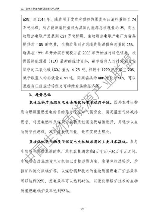 5.農林生物質與燃煤混燃發電存在技術挑戰,難以保障可再生能源補貼安全。報告提出國外混燃發電主要目標為煤炭減量化及減排二氧化碳為主的溫室氣體,目前更多發展與天然氣混燃或者全部生物質作為原料。我國農林生物質與燃煤混燃發電存在原料適應性差、能源利用效率低、無法解決秸稈露天焚燒、發電量計量監測困難、無法發揮大規模替代燃煤作用等技術挑戰和問題,仍處于發展初步階段。需進一步開展有效的監管工作,逐步完善農林生物質發電領域的監管體系,為可再生能源補貼資金的安全發放提供保障。