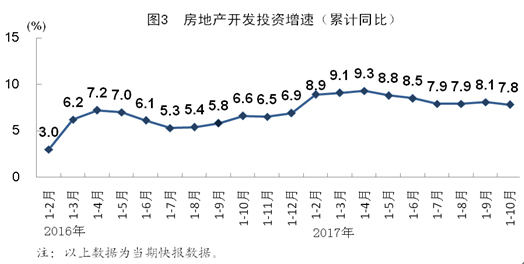 1-10月份,全國房地產開發投資90544億元,同比增長7.8%,增速比1-9月份回落0.3個百分點,其中住宅投資增長9.9%。房屋新開工面積145127萬平方米,同比增長5.6%,其中住宅新開工面積增長9.6%。全國商品房銷售面積130254萬平方米,同比增長8.2%,其中住宅銷售面積增長5.6%。全國商品房銷售額102990億元,同比增長12.6%,其中住宅銷售額增長9.6%。房地產開發企業土地購置面積19048萬平方米,同比增長12.9%。10月末,全國商品房待售面積60258萬平方米,比9月末減少882萬平方米。1-10月份,房地產開發企業到位資金125941億元,同比增長7.4%。
