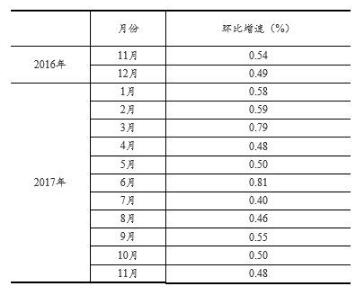 根據季節調整模型自動修正結果,對2016年11月至2017年10月份規模以上工業增加值環比增速進行修訂。修訂結果及2017年11月份環比數據如下:
