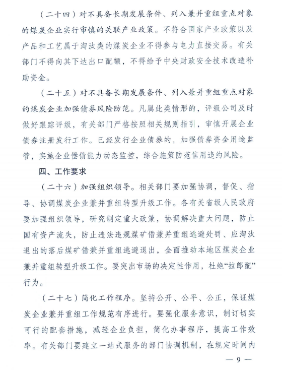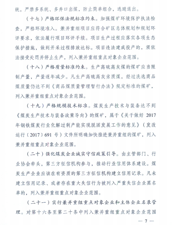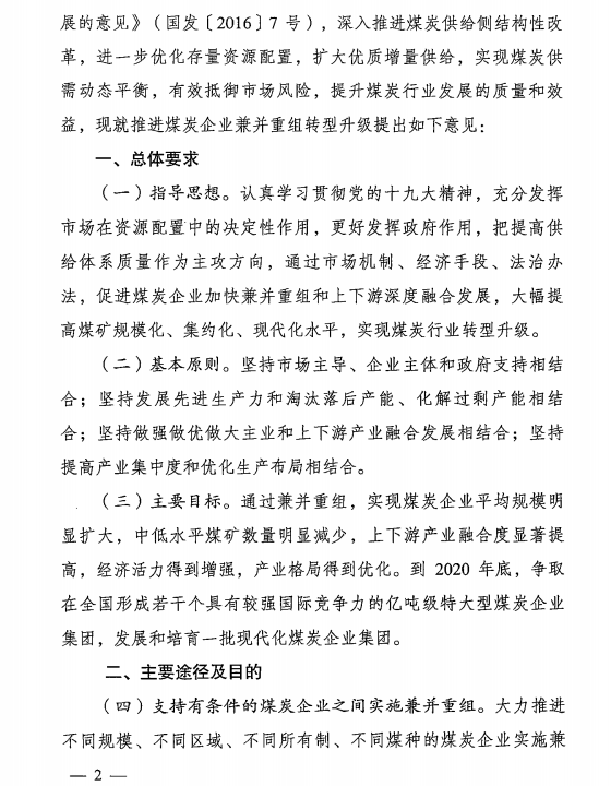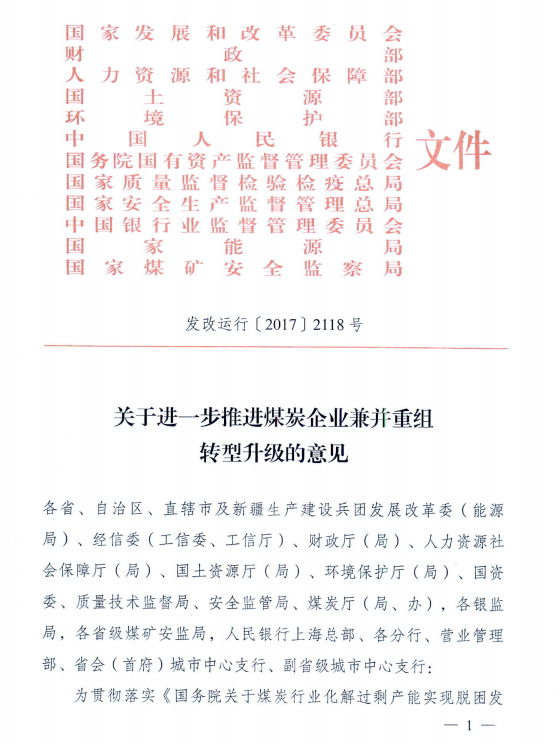 北極星電力網(wǎng)獲悉,近日國家發(fā)改委、國家能源局、國家環(huán)保部等12部委聯(lián)合印發(fā)了《關(guān)于進一步推進煤炭企業(yè)兼并重組轉(zhuǎn)型升級的意見》。文件明確,支持有條件的煤炭企業(yè)之間實施兼并重組,支持發(fā)展煤電聯(lián)營,支持煤炭與煤化工企業(yè)兼并重組,支持煤炭與其他關(guān)聯(lián)產(chǎn)業(yè)企業(yè)兼并重組等。到2020年底,爭取在全國形成若干個具有較強國際競爭力的億噸級特大型煤炭企業(yè)集團,發(fā)展和培育一批現(xiàn)代化煤炭企業(yè)集團。詳細情況如下: