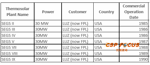早在20世紀80年代初,首諾便為Luz公司在美國加利福尼亞州Mojave沙漠相繼建成的9座槽式太陽能熱發電電站SEGSI~SEGSIX提供導熱油,SEGSI系列電站總裝機容量達35.38萬千瓦,為全球最早一批商業化光熱發電項目。此后,Therminol®VP-1被全球二十多家商業化槽式太陽能熱發電電站廣泛采用,首諾導熱油覆蓋的商業化槽式太陽能熱發電電站總裝機容量達1.4GW。