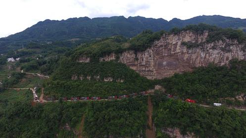 杰瑞壓裂車組行駛在四川頁巖氣地區蜿蜒的山路中