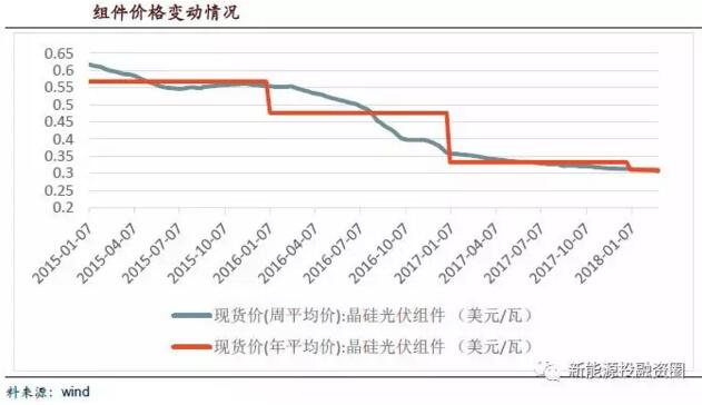 2016年在內蒙烏?;卣型稑酥校鸵呀洺霈F0.45元/度的報價,這兩年組件端成本快速下降,大大降低了初始投資成本;同時相比第二批項目,能源局在對第三批領跑者基地項目中,對可能出現的各種非技術成本、外部成本做了嚴格控制,如土地租金設限、外送線路共建等建議,令第三批項目的投資環境大幅改善,也降低了運營期間的成本。因此我們也有理由相信0.39元這樣的報價也不是企業在有意的惡性競爭,而是有信心通過技術革新和成本控制實現盈利。同時從2018年產業鏈各個環節的降價幅度來看,硅片和硅料率先降價,趨勢將向下降的電池片和組件進一步傳導,因此項目承接方的技術成本將大幅減低。