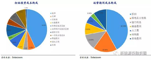光伏電站初始投資成本中組件占比達到43%,組件價格的下降會大大提高初始資金的投入,同時可以看到運營期間除了折舊費用外,占比最大的就是土地租金和土地稅,本次領跑者項目能源局重點提出了對非技術成本的控制方案。因此項目承接方的運營期間費用也會得到改善。因此我們認為未來會有更多趨于“平價”的競標報價。助力光伏行業的平價道路。
