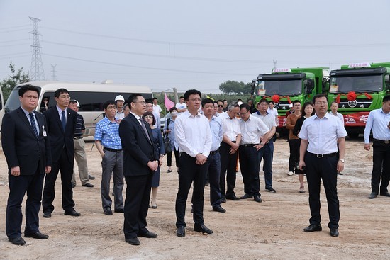 柞村鎮黨委書記楊棟、柞村鎮鎮長邱維興、全國綠色礦山聯盟理事長杜根杰、杰瑞環保集團董事長王丕學、杰瑞集團高級副總裁李雪峰、杰瑞設計院院長楊波出席項目開工儀式并為項目奠基。