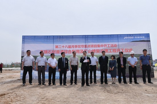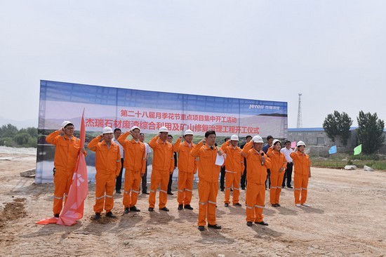 5月25日上午,杰瑞萊州石材廢渣綜合利用及礦山修復治理工程開工儀式在萊州市柞村鎮十字口項目駐地隆重舉行。
