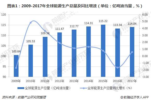 2017年全球能源產量為114.04億噸油當量 同比增長0.62%