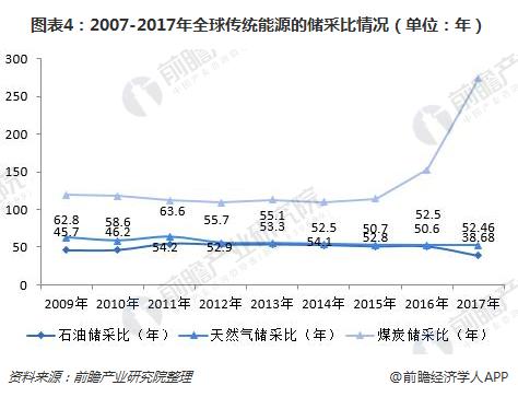 2007-2017年,全球的石油和天然氣儲采比在下降,2017年分別為38.68年和52.46年;煤炭的儲采比再上升為274年。雖然煤炭的儲采比在增加,但是使用煤炭對地球環境來說并不是一個很好選擇,煤炭燃燒時絕大部分的硫被氧化成二氧化硫(SO2),隨煙氣排放,污染大氣,危害動、植物生長及人類健康,腐蝕金屬設備,近年來人們對環境保護越來越重視,為了保護環境,各個國家都在提倡降低煤炭的使用量,要加強對新能源的開發和利用。