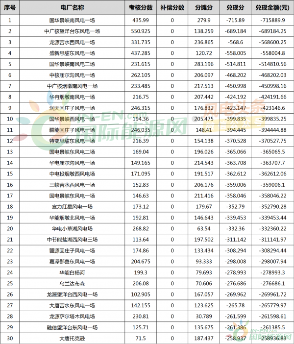 10月9日,國家能源局新疆監管辦發布《關于公示2018年8月份新疆電網“兩個細則”考核補償情況》的通知。根據《<西北區域發電廠并網運行管理實施細則>及<西北區域并網發電廠輔助服務管理實施細則>的通知》規定,現將2018年8月份新疆電網發電廠并網考核和輔助服務補償結果予以公示,公示期為4個工作日(自2018年10月9日至2018年10月12日止)。據國際能源網/風電頭條整理,2018年8月份新疆電網共181個風電場參與考核,總考核分數為15661.81,分攤分為13257.748, 兌現分為-28919.559,兌現金額為-28919556.53元。