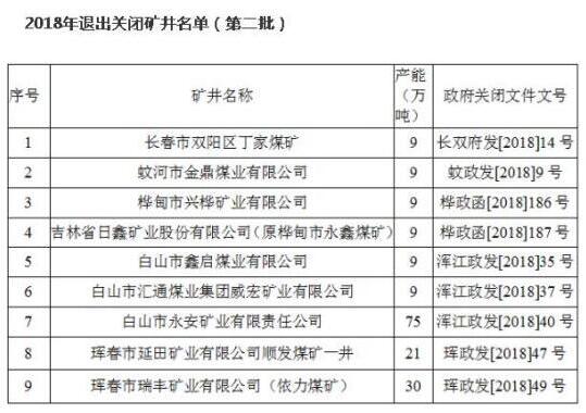 近日,按照《中共中央國務(wù)院關(guān)于全面振興東北地區(qū)等老工業(yè)基地的若干意見》(中發(fā)〔2016〕7號)和《國務(wù)院關(guān)于煤炭行業(yè)化解過剩產(chǎn)能實現(xiàn)脫困發(fā)展的意見》(國發(fā)〔2016〕7號)及國家發(fā)展改革委等部委關(guān)于煤炭行業(yè)去產(chǎn)能一系列文件精神,長春市雙陽區(qū)人民政府、吉林市蛟河市人民政府、吉林市樺甸市人民政府、白山市渾江區(qū)人民政府、延邊州琿春市人民政府按照相關(guān)要求,決定對長春市雙陽區(qū)丁家煤礦等9處礦井予以關(guān)閉。