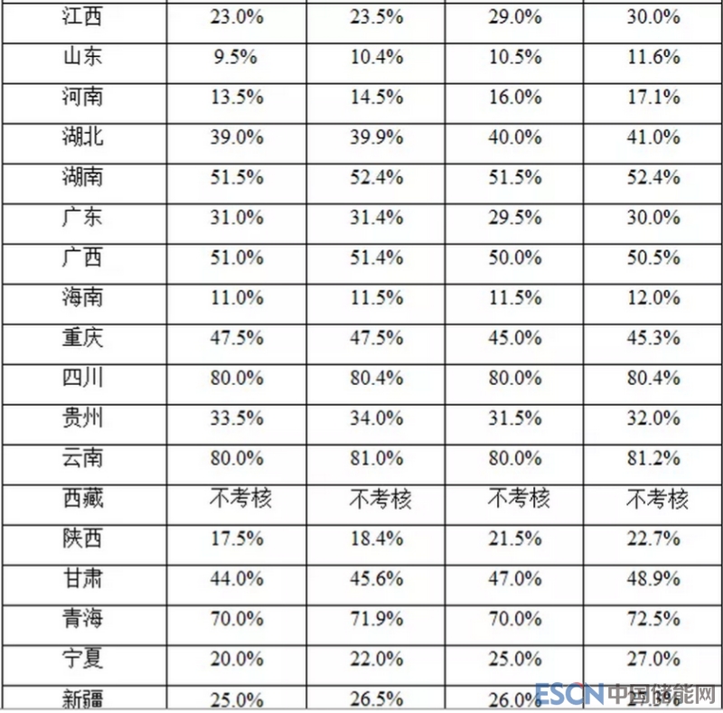 考核指標(biāo)包括可再生能源電力總量配額和非水電可再生能源電力配額,總量配額包括全部可再生能源發(fā)電種類,非水電配額包括除水電以外的其他可再生能源發(fā)電種類。