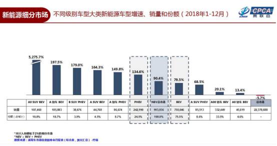 反觀傳統(tǒng)燃油車領(lǐng)域,2018年,燃油車零售量為2138.57萬輛,比上年同期下降7.8%,并且乘用車三大細分市場皆出現(xiàn)了負增長的情況。