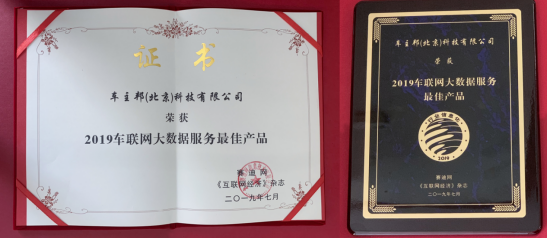 圖注:車主邦榮獲“2019車聯(lián)網(wǎng)大數(shù)據(jù)服務(wù)最佳產(chǎn)品”