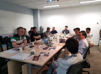 圖注:王旭東教授(右排二)在“中國加油站行業(yè)分析會(huì)”上講課