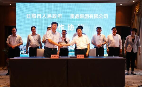 6月19日,奧德集團(tuán)與日照市舉行集中簽約活動(dòng),奧德集團(tuán)總裁林波分別與日照市委副書記、市長李永紅,日照市委常委、副市長劉兆亮?xí)劇?/p>