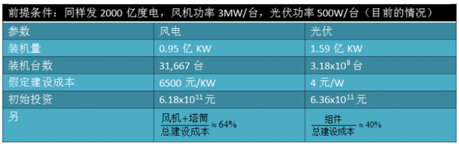 我們根據兩種發電方式以目前的情況同時發相同電量所需要的初始投資進行對比:
