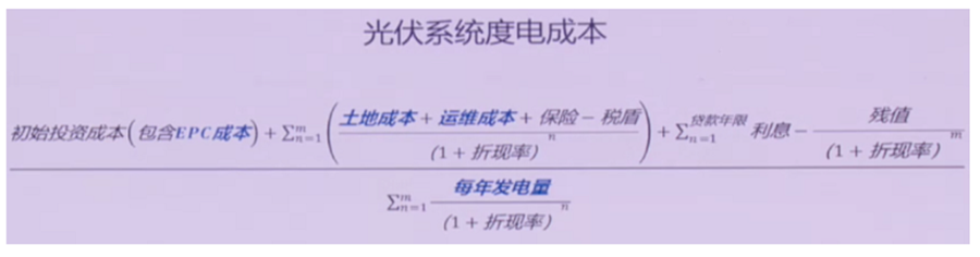 發電系統的度電成本計算起來非常復雜,且有眾多變量和不確定性。在“隆晶晶”前幾天組織的182組件交流推廣會上,晶科展示了光伏系統度電成本的計算方式: