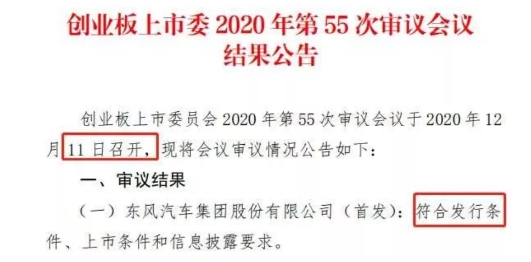3000億巨頭,"閃電過會"!創業板史上最大IPO來了;開板11年,創業板迎來史上最大IPO,擬募資210億的東風集團。東風集團2020年6月底總資產接近3000億。12月11日,創業板上市委員會2020年第55次審議會議召開,東風集團等4家企業上會,并且均順利過會。這意味著,在H股上市15年后,東風集團的距離A股上市越來越近了。
