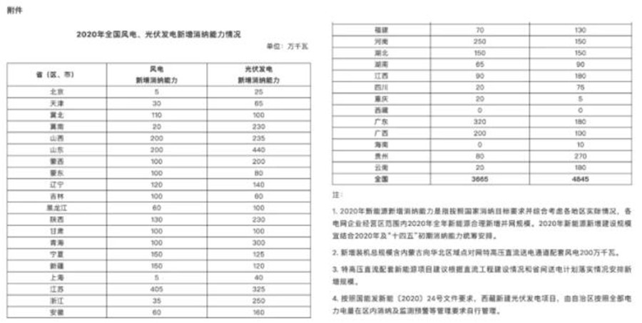 2020年,電網(wǎng)給了風(fēng)電36.65GW、光伏48.45GW的消納空間,合計85.1GW;