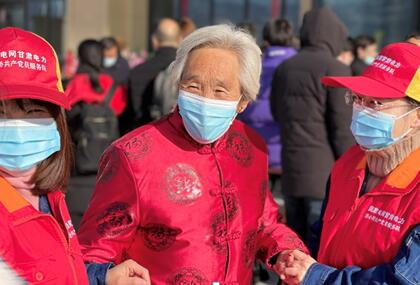 "老奶奶,您慢點,您今天穿的棉襖很喜慶啊……""這不通高鐵了,活了一大把年紀,俺也來看看高鐵,心里是真的高興。"環縣高鐵站,甘肅電力"連心橋"(慶陽南梁)共產黨員服務隊兩名隊員正扶一位老奶奶上臺階。其他服務隊隊員們也忙著幫助乘客提帶行李,協助乘客網上取票,指引乘客進站,配合高鐵站工作人員擺放標示牌,一梭梭"紅馬甲"的影子穿梭在人群中格外醒目。