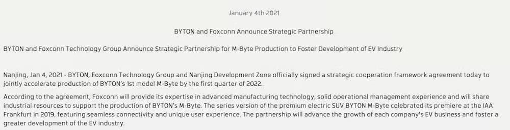 01.拜騰宣布和富士康達成戰略合作伙伴關系