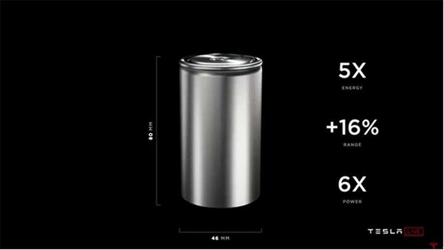 當然,為進一步降低成本,特斯拉如今也自研電池,而且出手不凡。比如在2020年的電池日活動上就發(fā)布了特斯拉自主研發(fā)的4680無極耳電池,這種電芯的高度為80mm,直徑為46mm,其名字“4680”就來源于此。這種新型電芯比特斯拉Model 3車型上搭載的2170電芯要粗不少,有點像是一個小罐頭。依托于新的電池技術(shù)以及由特斯拉把控的生產(chǎn)流程,未來能夠使特斯拉車型的續(xù)航里程提升54%,每kW·h的電池成本降低56%,每kW·h所需的投資成本降低69%。也就是說,這種電池能量更高,使車型的續(xù)航里程增加,但成本卻更低。至于,這種電池與比亞迪的刀片電池哪個更好,我們還需要電池量產(chǎn)后才能評判。