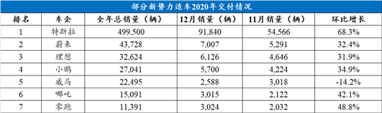 根據(jù)其官方公布的數(shù)據(jù)顯示,六家車企的總計(jì)交付量已經(jīng)達(dá)到152,370輛,約占整個(gè)新能源市場(chǎng)份額的13%,進(jìn)步十分顯著。而在細(xì)分車型銷量榜中,12月理想ONE、小鵬P7得以入圍,總榜之中則為理想ONE、蔚來(lái)ES6。