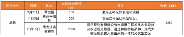根據(jù)半年報顯示,2020年上半年,晶科科技已儲備待建電站規(guī)模約1.409GW,為持續(xù)發(fā)展提供有力支撐。據(jù)光伏們不完全統(tǒng)計,2020年下半年,晶科已于廣西、貴州、黑龍江等地簽署超2GW規(guī)模光伏項目,涉及漁光互補、農(nóng)光互補等多種形式。此外,晶科科技于2020年7月、12月分別與全球領(lǐng)先石油和天然氣企業(yè)bp、京能國際簽署合作協(xié)議,就國內(nèi)光伏發(fā)電項目開發(fā)與建設(shè)等多方面展開戰(zhàn)略合作。