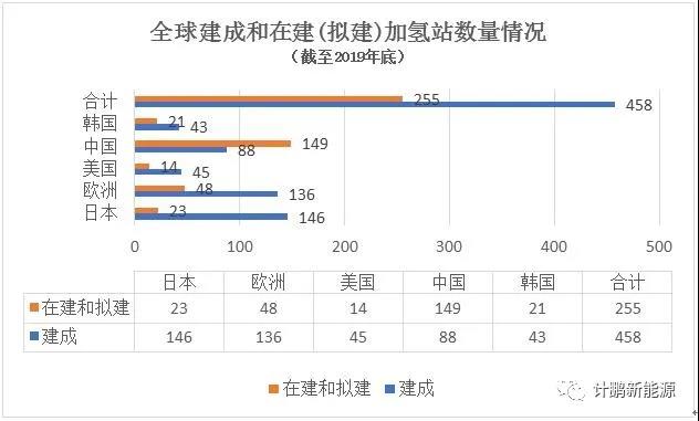 2013年至2019年底,全球氫燃料電池汽車共計銷售19500輛,2019年全球氫燃料電池汽車保有量為10409輛;截至2019年底,中國氫燃料汽車共計生產(chǎn)7000余輛,2020年銷售約1300輛,主要以公交車、物流車為主。到2019年底,全球已建成458座加氫站,在建和擬建255座加氫站;其中,中國已建成88座加氫站,占全球已建成加氫站的19.2%;在建和擬建149座,占全球在建和擬建加氫站的58.4%,數(shù)量居世界第一,發(fā)展速度迅猛。