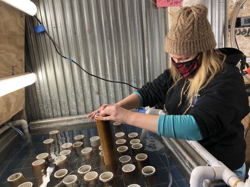 奧利維亞·梅西埃(Olivia Mercier)在波特蘭的潮流技術(shù)公司經(jīng)營(yíng)海帶孵化場(chǎng)。她在一根管子上纏繞生物可降解細(xì)繩,培養(yǎng)孢子體或稱(chēng)早期海藻,再將繩子放到海洋里。
