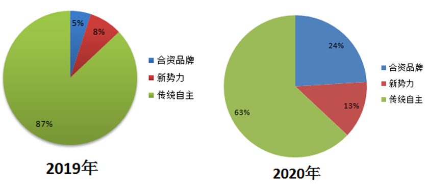 純電動市場品牌陣營分布情況數據來源:乘聯會,交強險