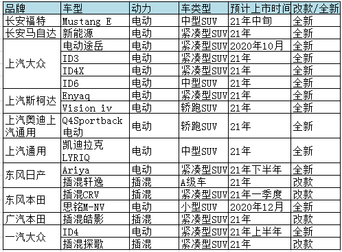 五菱宏光MiniEV,秦PLUS,特斯拉ModelY,滴滴專用車D1,大眾ID4,小鵬P5,領克0等這些都是2021年可能的明星車型。